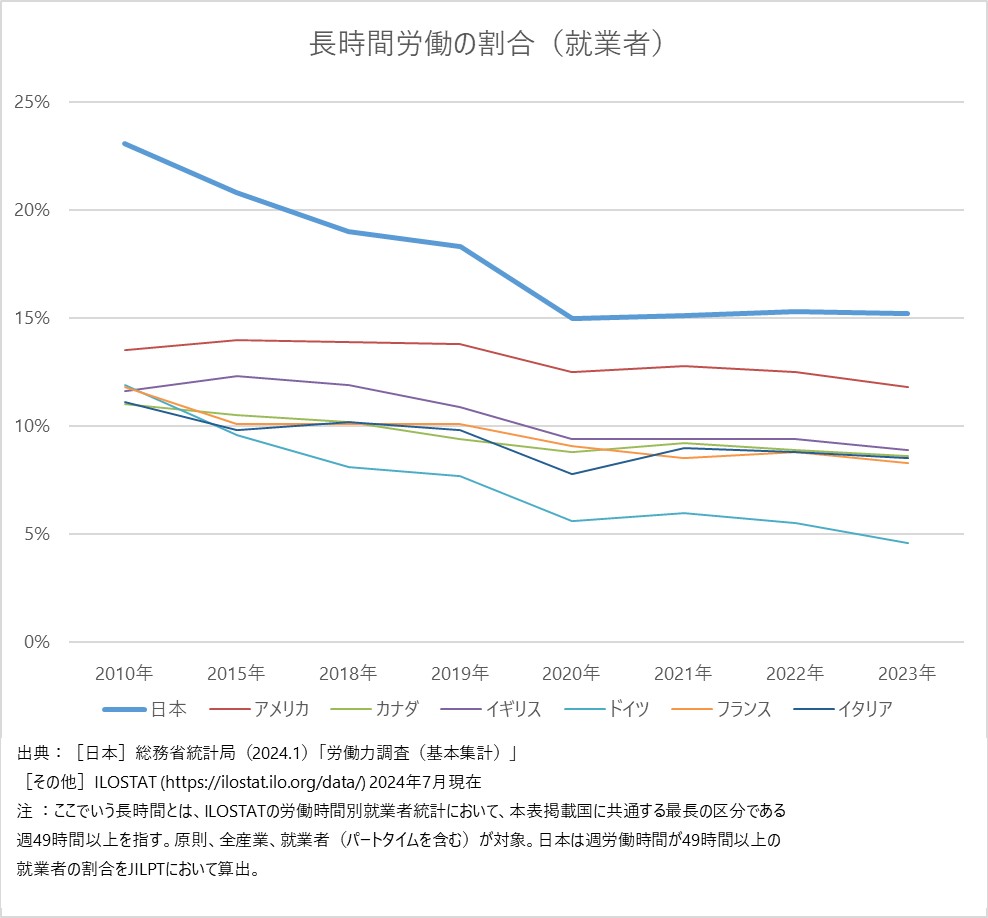 また、ドイツは長時間労働の割合が減っていて、これは特徴的です。